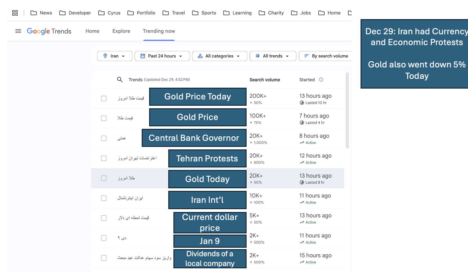Noticed that when Gold dipped on Dec 29 it was greater than any other news in Iran by a major factor.
